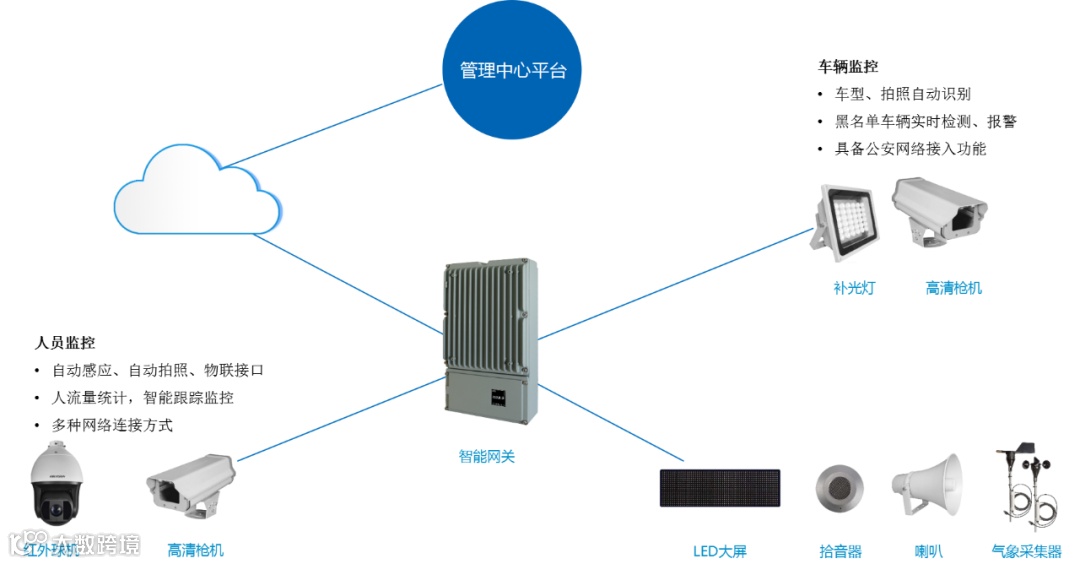 自动语音播报、视频对讲、喊话、LED文字提示等。