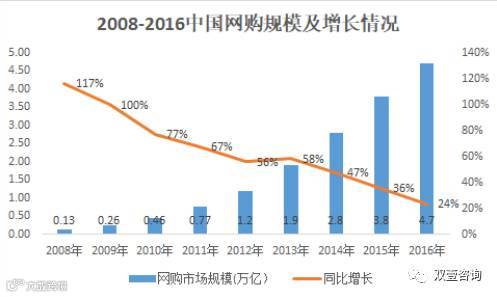 2008-2016网购年复合增长率65%,快递年复合增长率45%