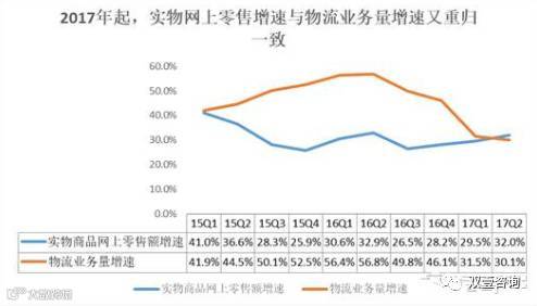 2017年快递、网购增速趋于一致