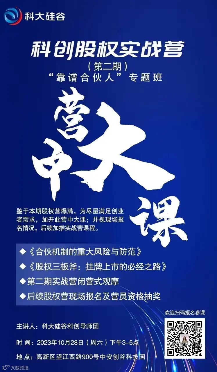 营中大课开放丨科创股权实战营(第二期)“靠谱合伙人”专题班