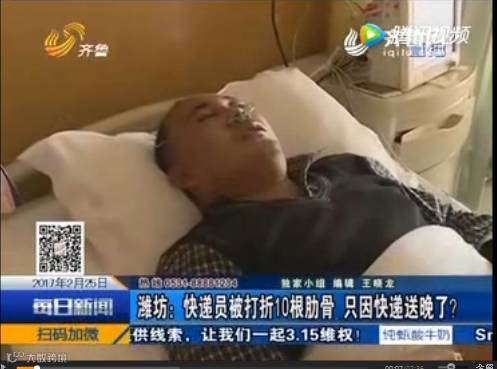 近日(2月24日),又一快递员因为被打而上了“头条”——据媒体报道,在山东潍坊市,中通快递员李大哥因为快递送晚了几分钟而惨遭毒打,造成10根肋骨被打折,鼻梁和额骨也被打断。打人者之凶残,简直到了无以复加的地步。
