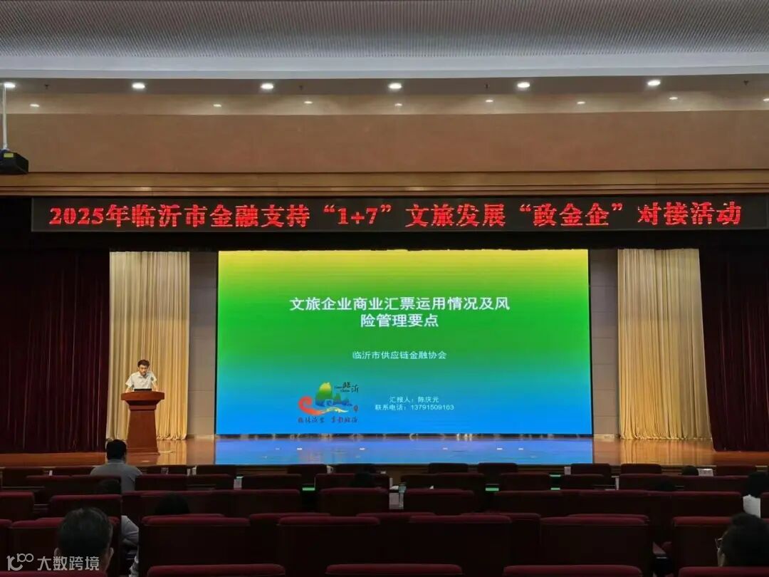 政策宣讲阶段。临沂市供应链金融协会秘书长陈庆元做《文旅企业商业汇票(承兑)运用情况及风险管理工作》专题讲课,重点介绍临沂文旅企业用票情况、票据信息披露制度、票据逾期规则及常见原因等内容,帮助文旅企业树立规范开展票据业务理念。