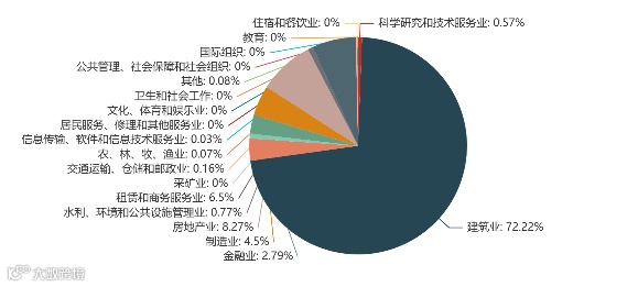 (三)余额情况。9月末,临沂辖区有108户企业的商业汇票逾期余额大于零,逾期余额共计30.78亿元(其中天元建设集团有限公司21.27亿元),同比增长453.56%,环比下降0.07%。分行业来看,逾期余额占比前三名的行业分别是:建筑业占71.89%,房地产业占11.51%,制造业占4.69%。