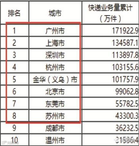 第六,我国快递业发展地域分布结构差异继续体现。可以从中看出,2017年上半年快递业发展主体在东部。这一点还可以从业务量的城市排名上得到证实。