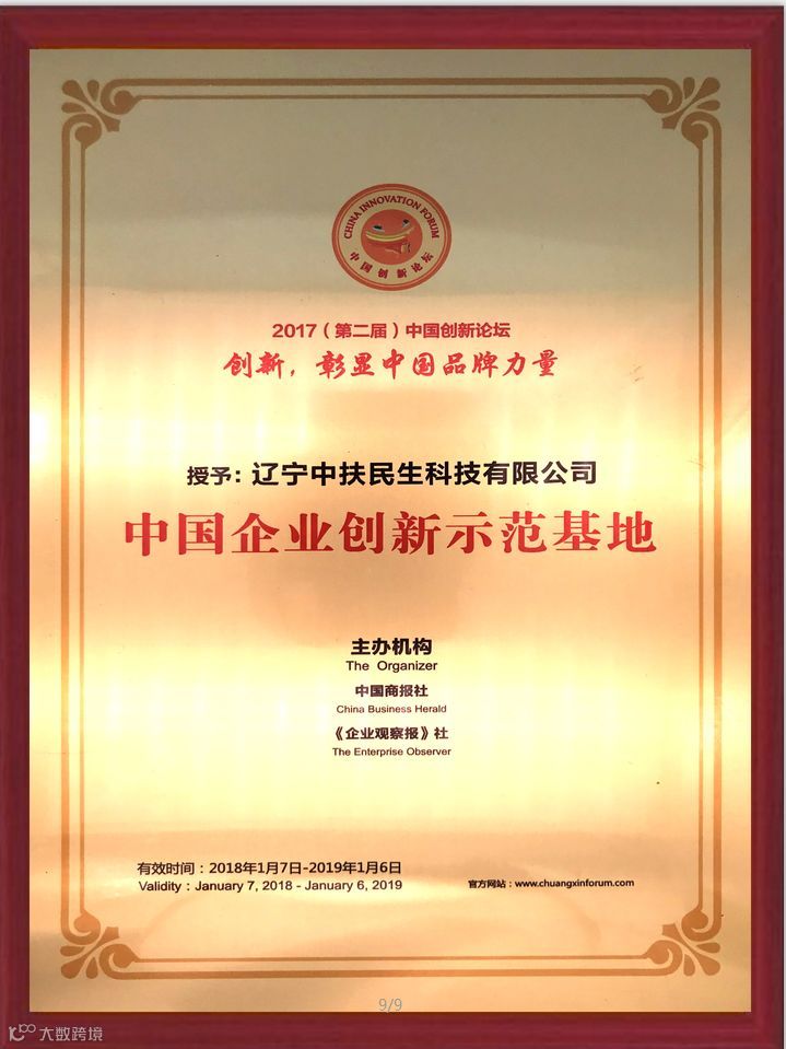 辽宁中扶民生科技有限公司在本次大会上荣获“中国创新十大影响力企业”、“中国企业创新示范基地”双项大奖!