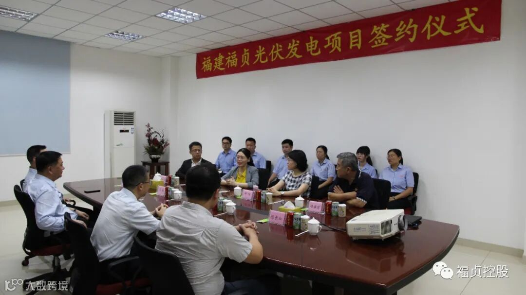 福建国电风力发电有限公司党委副书记、总经理王威等领导一行,莅临福建福贞考察交流,并出席光伏项目合作签约仪式;公司李毓岚执行副总对王威一行的到来表示欢迎!对合同的签订表示热烈的祝贺!福贞公司相关领导与福建风力发电有限公司项目开发人员共同参加仪式。