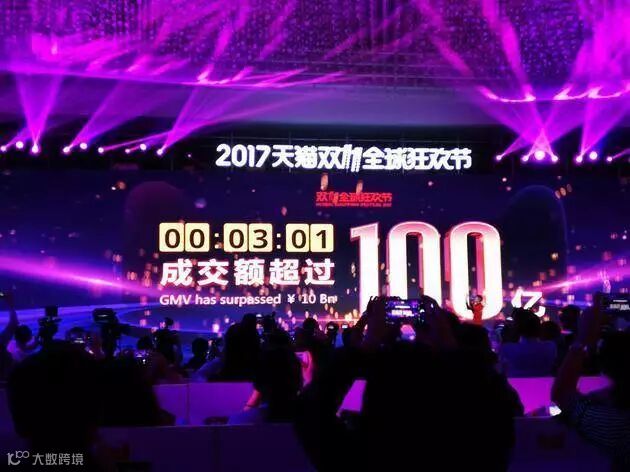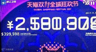 截止11月11日9点04秒,阿里巴巴天猫交易额冲破1000亿元。