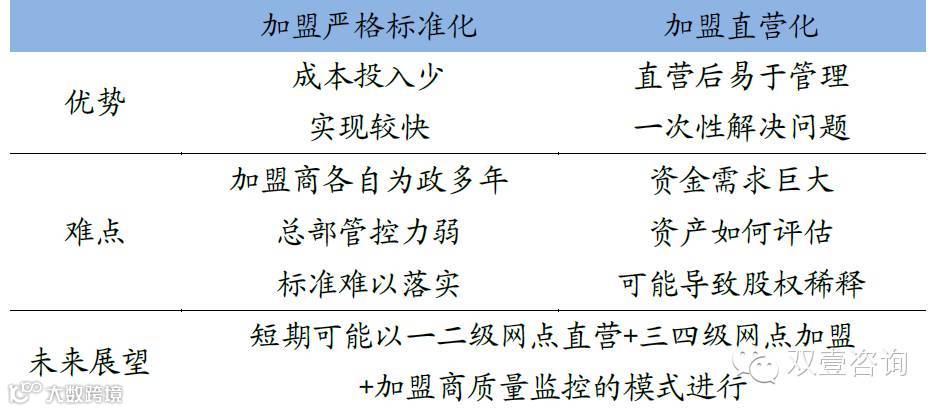 加盟商利益分配是最大阻力,资金周转要求显著提升,直营化任重道远