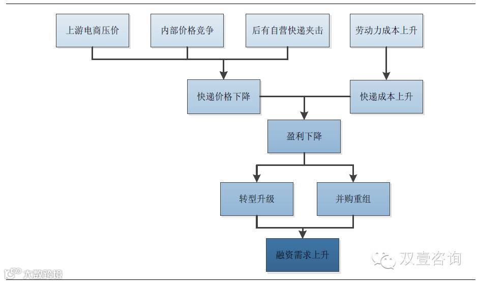 单票价格下降和人力成本上升的双重挤压,给以低价电商件为主的三通一达带来巨大的盈利压力。要改变这种局面有两条出路:1)并购扩张;2)转型升级。而上市融资都是必经之路。
