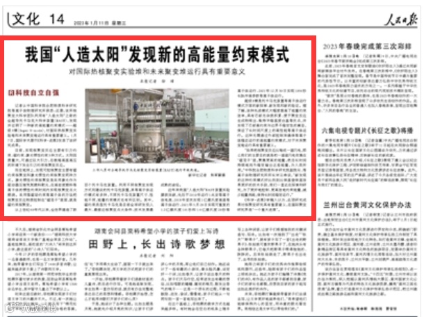 记者从中国科学院合肥物质科学研究院等离子体物理研究所获悉:近期,该所核聚变大科学团队利用有“人造太阳”之称的全超导托卡马克大科学装置(EAST),发现并证明了一种新的高能量约束模式——超级I模(Super I-mode),对国际热核聚变实验堆和未来聚变堆运行具有重要意义。1月7日,国际学术期刊《科学·进展》发表了该研究成果。