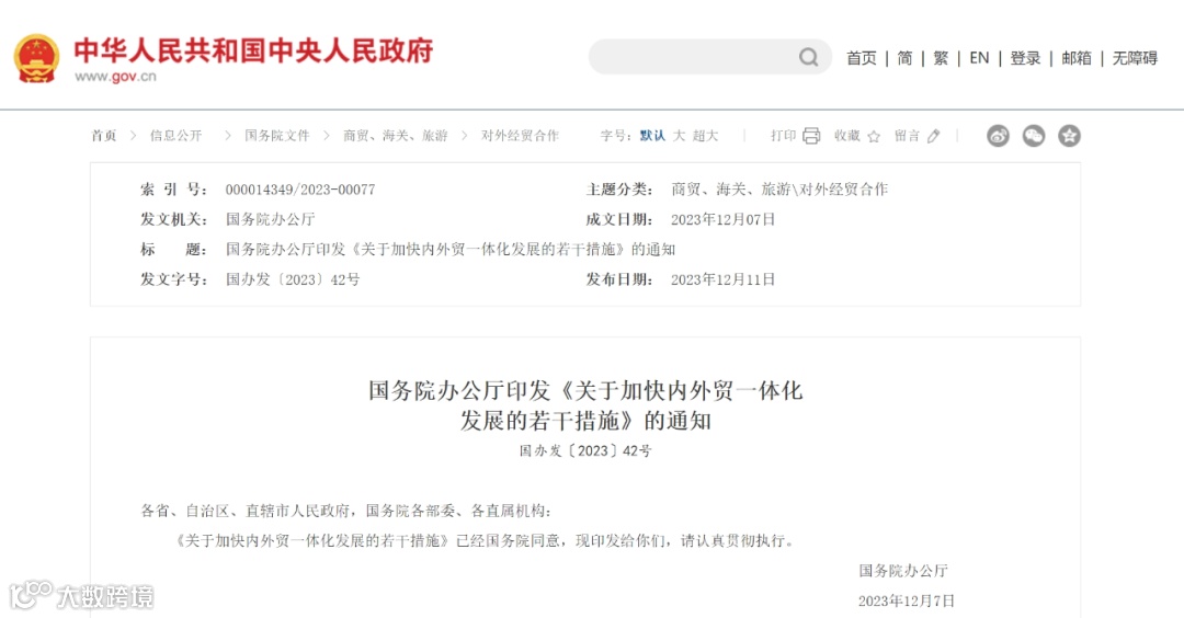 关于加快内外贸一体化发展的若干措施