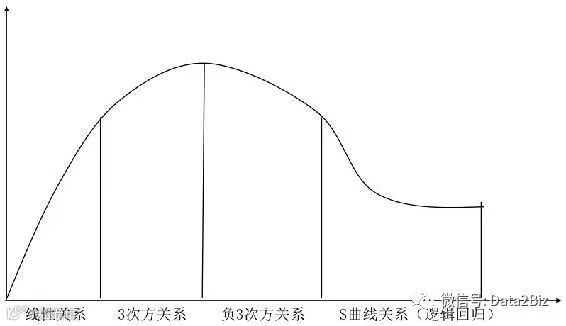 我们最常用的逻辑关系是线性回归关系,即构筑像Y=aX+b这样的关系。但在商业经济环境中,这个公式在某个阶段成立,当到达另外一个阶段时,同样是线性关系,但a和b的值都会发生变化,这与情景有关系。