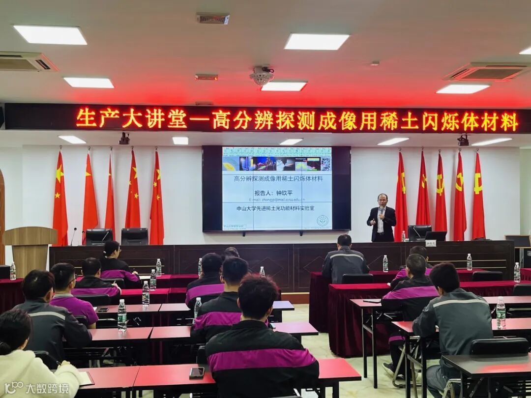培训会上,钟玖平教授为参会人员讲授了题为“高分辨探测成像用稀土闪烁体材料”的专题讲座,从实际应用案例出发,深入浅出地为大家介绍了闪烁体发光原理,详细全面地分析了硅酸钇镥晶体制造的发展历程、应用领域、未来探索方向以及国家关于稀土光功能材料的发展规划。