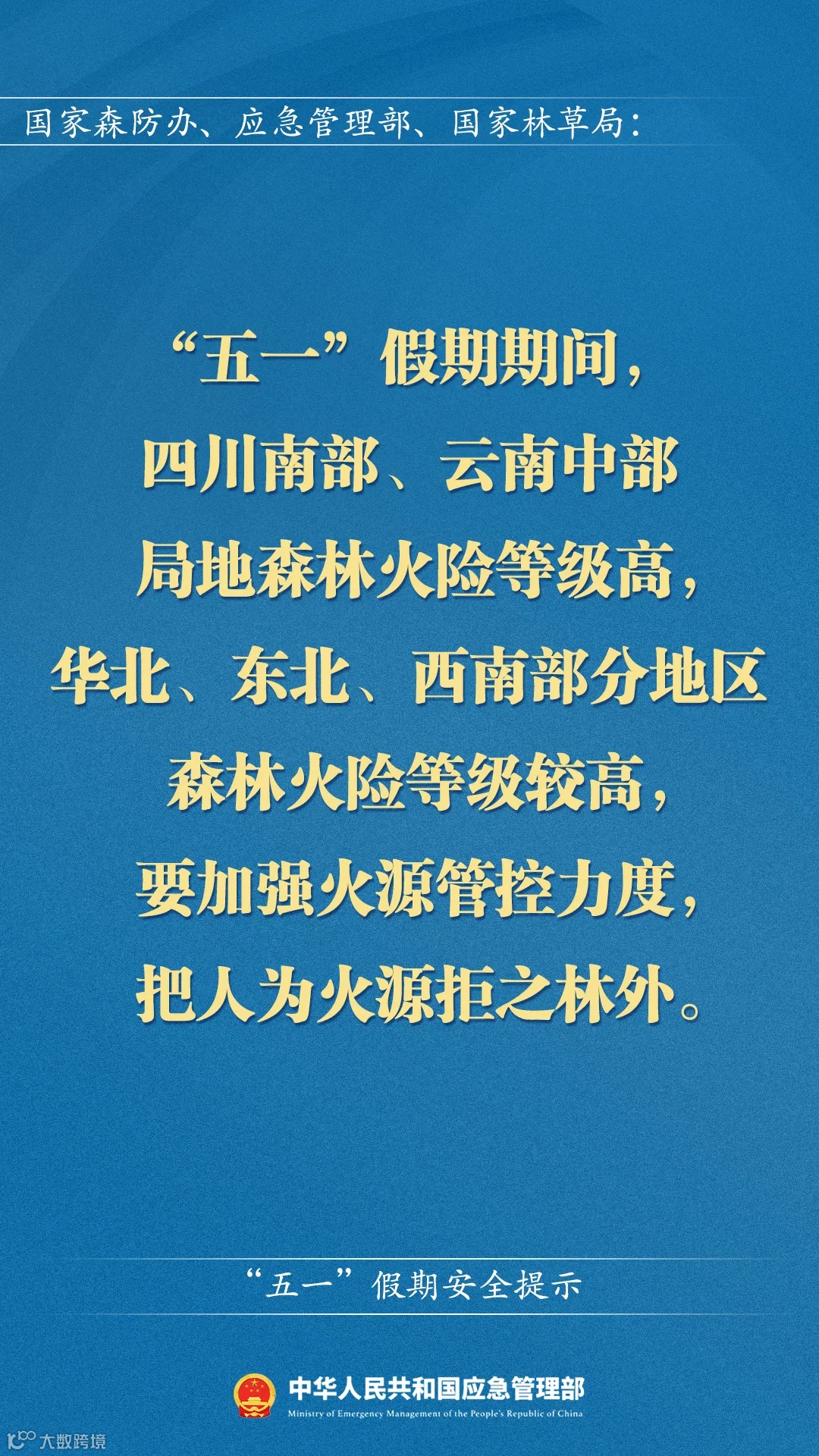 应急管理部“五一”假期安全提示