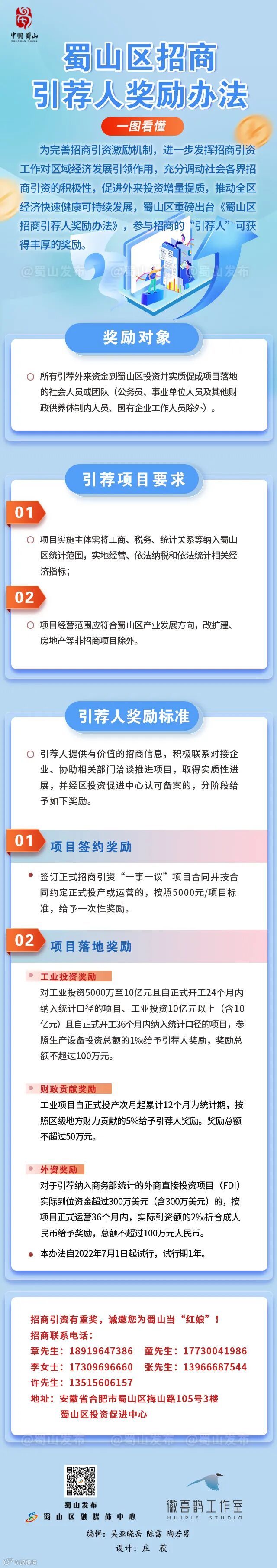 一图看懂 | 最高150万元,蜀山区出台招商引荐人奖励办法