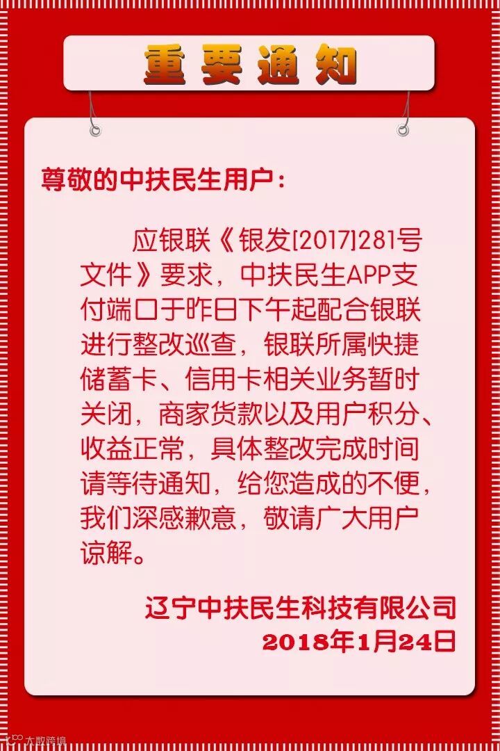 通知!银联下发关于APP支付端口整改巡查的通知(《银发[2017]281号文件》)