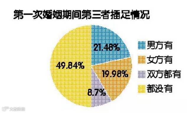 年初,北京大学社会调查研究中心联合百合网,发布了《2015中国人婚恋状况调查报告》。 数据结果显示,婚姻破裂的家庭中,确实有超过一半是因为第三者插足。而在婚姻中出现第三者的情况中,男、女方占比相当,各占20%。而双方都有出轨的情况也不鲜见(近10%)。所以单方面指责男性出轨显然并不公平,女性出轨的情况也不少。