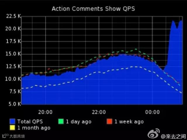根据新浪CEO提供的数据显示:王宝强发布微博一个小时后,QPS(每秒查询率,即最大吞吐能力)瞬间增长2倍之多;