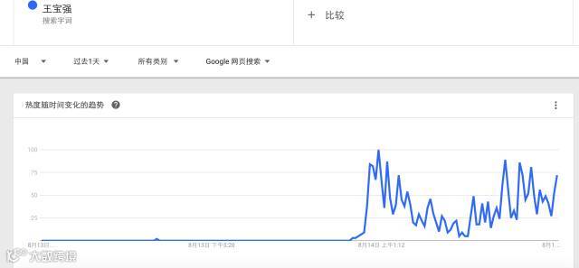 根据Google Trends数据显示,王宝强关键词在一度达到热度100最高峰值;