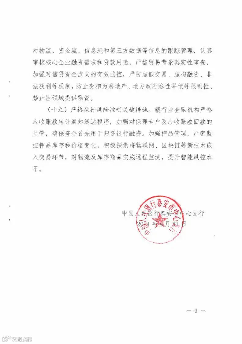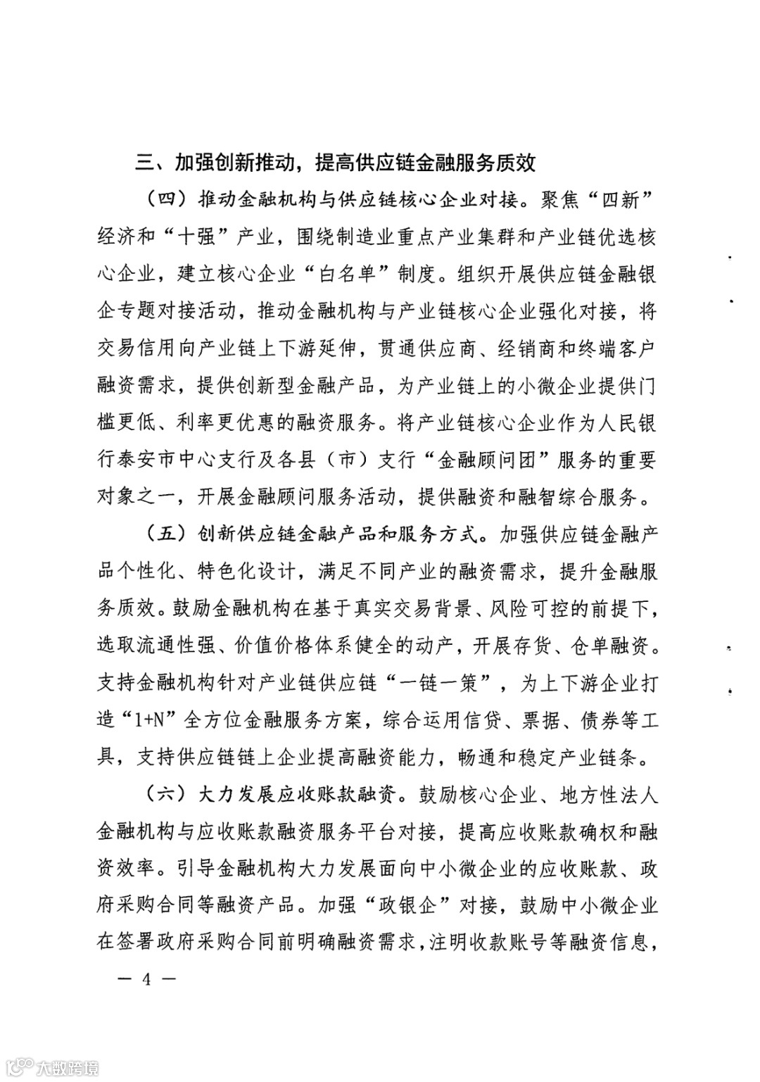 泰安市人民银行印发《关于推动供应链金融创新规范发展的实施意见》