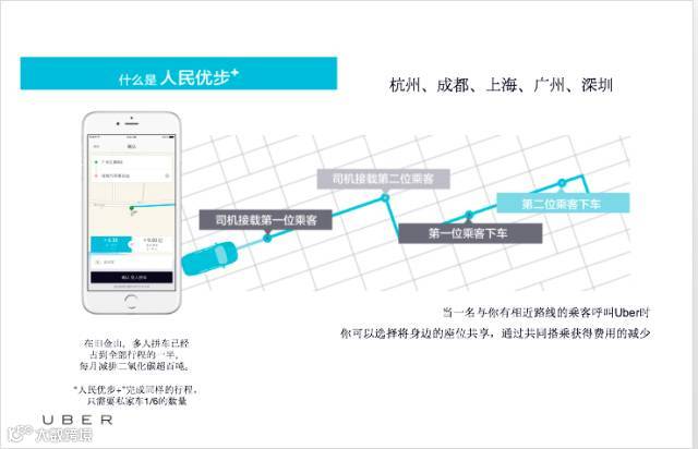 下面介绍一下我们优步在推动城市可持续发展方面的一些工作。首先我们作为一个企业,还是希望通过我们的产品不断完善我们的产品,为城市的可持续发展做出贡献。首先今年我们在中国推出了“人民优步+”,也就是拼车服务,对相同路径、相同线路上的乘客进行拼车。现在一直有一个问题困扰着中国政府,一谈到可持续交通,大家都想到用公交、地铁等集约化的方式完成人们的出行,但是客观情况下,我们的出行者都有着个性化出行需求,他希望完成点对点的服务,所以在这种情况下,我们认为拼车是很合理的解决方案。既满足了出行者个性化的需求,又用集约的方式实现绿色低碳出行。