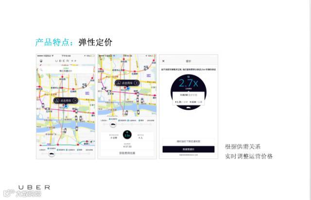 另外是弹性定价,优步是供需关系的平衡,我们通过经济的杠杆实现这样的功能。比如说在一些极端恶劣的天气,或者有一些庆典、体育比赛、赛事的热点区域,有的时候你可能会打不到车,但是我们会通过动态调价促使司机有这样的主动性接单,这样可以保证客户动态的价格调整,客户依然可以打到车。
