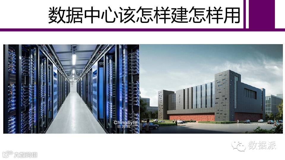 数据中心怎么建?左边这张图够高大上、够代表高科技了吧?它会幻化出什么呢?各地都希望它幻化出高科技地产,但究竟有多大的意义?目前中国各地都在争着要盖数据中心,但普遍的实际装机量不足设计装机量的10%。一方面本身设计装机量和实际装机量差别这么大,这里面就有资源配置不合理的问题。中国制定的绿色数据中心的标准PUE是1.5。大家知道,这个数值直接影响到每天数据中心运营的能耗指标进而是经济指标。我知道在一些发达国家的一流大公司,像Facebook、Google的数据中心的PUE指标能够控制在1.1以下。这意味着和我们传统钢铁产业石化产业一样,在数据中心这个新兴的产业中我们的单位产量能耗指标又落后于他人了。
