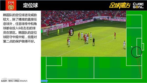 第四,韩国队的定位球进攻威胁较大,任意球传中和罚角球过程中,会有6名左右球员等候在禁区。韩国队的定位球防守中规中矩,但是对第二点缺乏足够的保护。此外,韩国队也可能会利用后场多面手张贤秀的大力手抛球发起进攻。