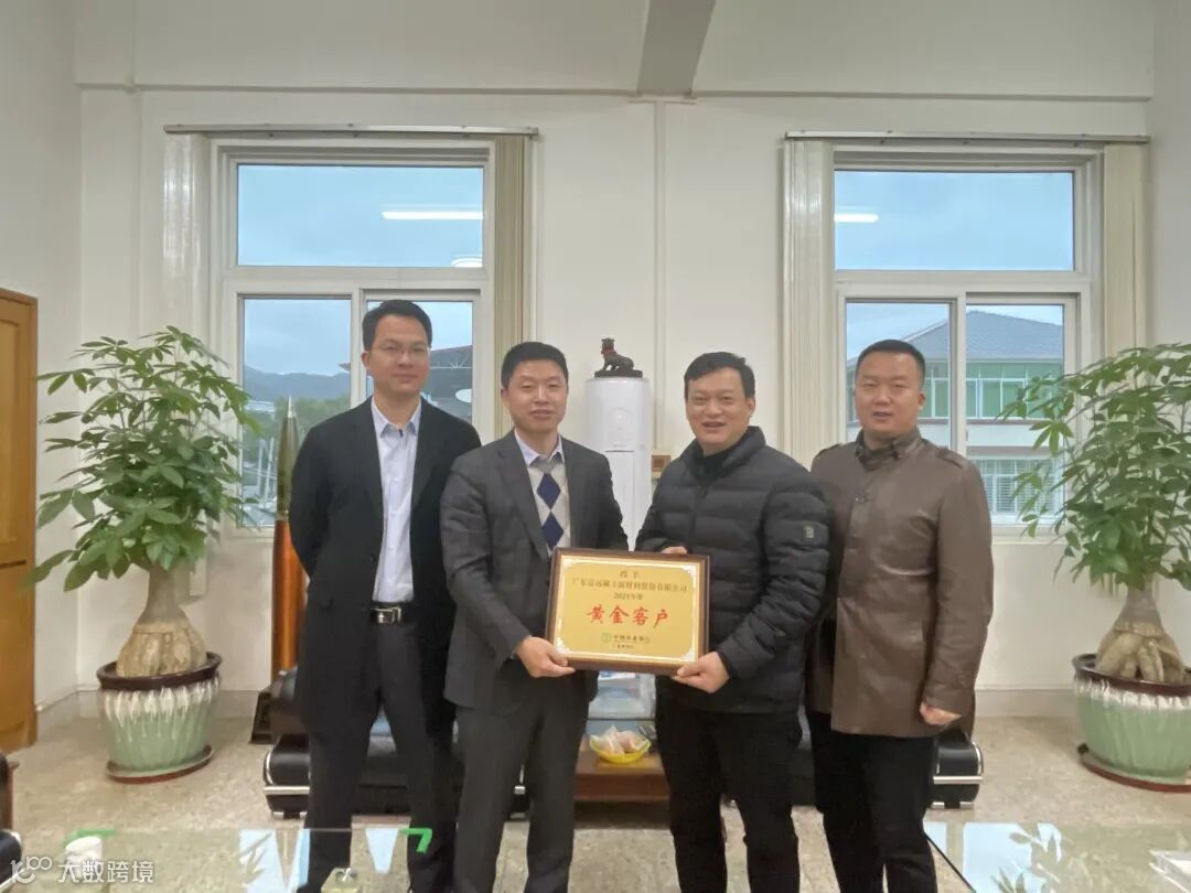 近日,中国农业银行梅州分行副行长王正、平远县支行行长徐文浩一行到访富远公司,代表中国农业银行广东省分行授予富远公司2021年度中国农业银行“黄金客户”牌匾。