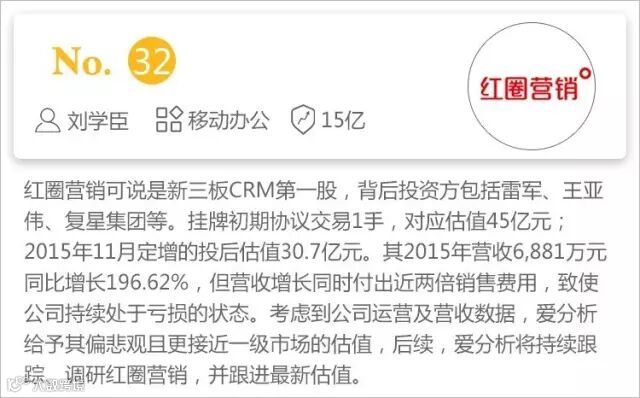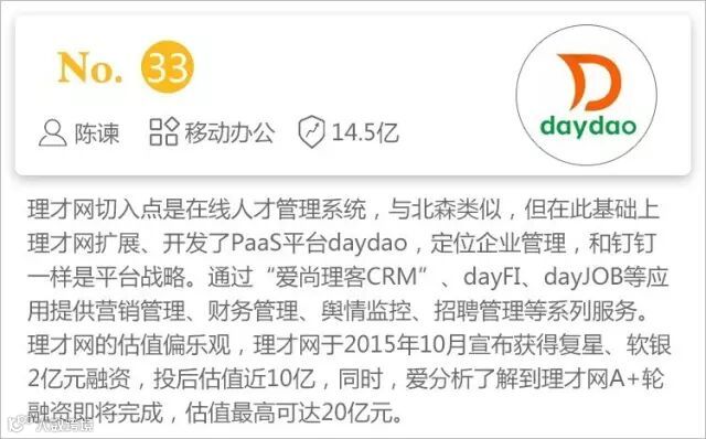 爱分析是一家专注于创新企业研究和评价的互联网投研平台。中国企业级服务估值排行榜,是继互联网金融、移动医疗之后,爱分析第三份榜单产品。我们将持续提供各个创新领域榜单和洞察。关注微信号 ifenxicom,及时获取第一手原创资讯!