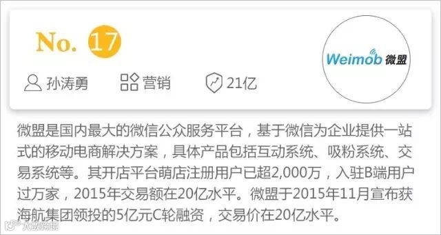 爱分析本次发布企业服务50强,囊括了云服务、大数据、移动办公、开发者服务、企业级智能、人力资源、营销、网络安全、办公租赁等众多细分行业。50家上榜企业总估值约1,979亿元,平均估值39.6亿元,中位数为18亿元,入围门槛6.5亿元。