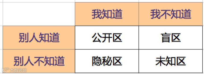 世界上还有许多有启发性的矩阵,比如说 “乔哈里窗格”(Johari Window)。乔哈里把事情分为 “我知道”、“我不知道”、“别人知道”、“别人不知道” 四类,然后矩阵组合出 “公开区”、“未知区”、“隐秘区” 和 “盲区” 四类。