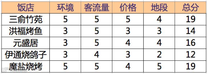 之前朋友想创业做酒厂,找我策划销售方案,我使用的就是多维矩阵。在大众点评上把热门饭店都找出来,根据环境、客流量、价格、地段等多个方面进行评价打分,最后得分最高的那些饭店,就是可以在一开始花大力气攻克的。
