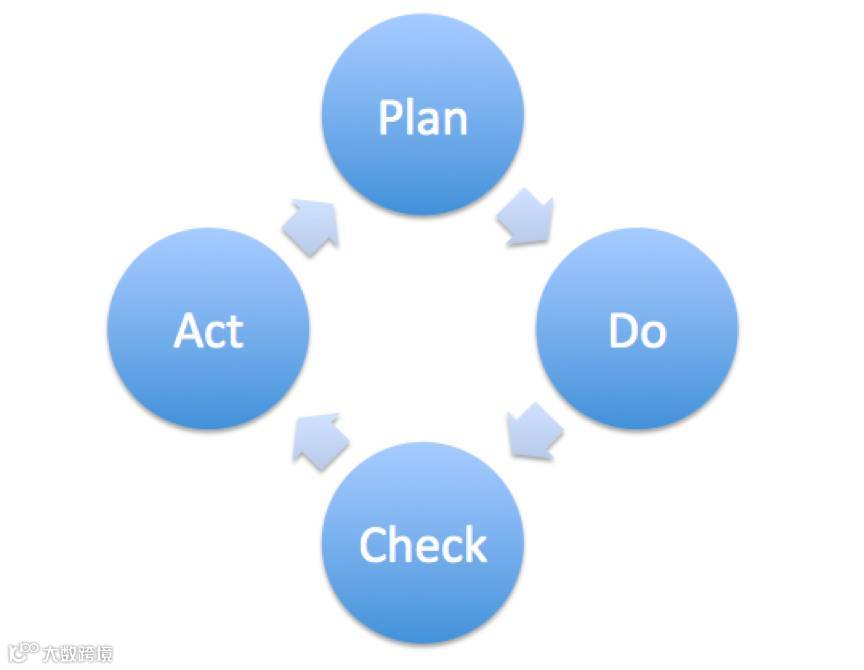 对于改善产品质量,PDCA 循环框架就非常好用。PDCA 循环由美国学者爱德华兹·戴明提出,一般用来提高产品品质和改善产品生产过程。其中 P 代表 Plan,也即计划;D 代表 Do,即执行计划,并在过程中收集信息;C 代表 Check,即研究上一步收集到的信息,和预期设计进行比较,并提出修改方案,包括执行后的改善和计划的完善使得计划的可执行性提高;A 代表 Act,即根据 Check 的结果进行改善,有时候也用Adjust来解释这个 A,更准确地表达修正改善的意思。
