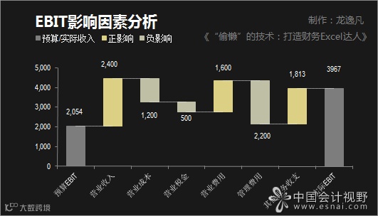 二是指从某一指标到另一指标的各种累积影响,比如分析EBIT指标从预算到实际值各因素的影响。