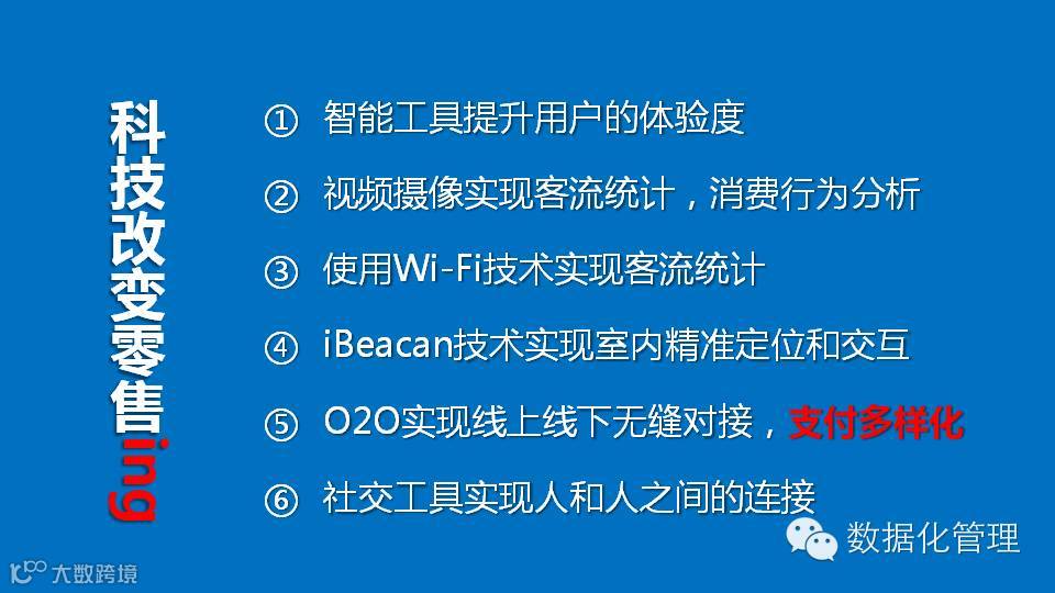科技一直在改变零售业,不过上个世纪的科技只是科技,没有产生数据,自然价值就打了折扣。例如视频技术我们只是用来防丢失,而没有数据化来分析消费者的购买行为。卫星定位我们用来监控业务员是否有偷懒行为,而没有数据化来分析拜访行为,优化公司人力配置等。