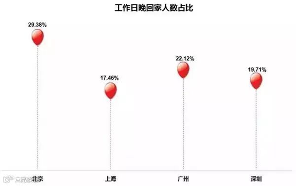 北上广深四个城市的上班族每天步履匆匆,繁忙的工作也在挤压着私人空间。四个城市中,北京人出行时间最长、加班时间最晚、加班范围最广、不能回家吃饭比例最高,各项指标都完胜上海、广州、深圳。