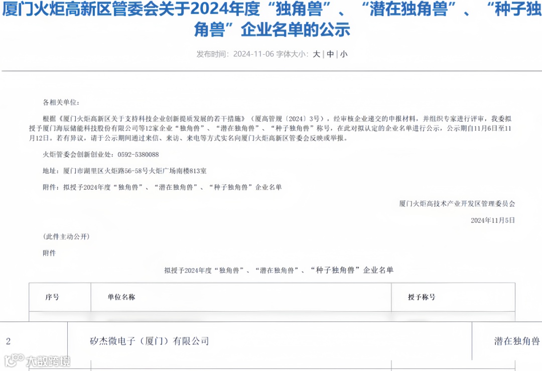 近日,厦门火炬高新区管委会正式揭晓了2024年度“独角兽”、“潜在独角兽”、“种子独角兽”的评选结果。矽杰微电子凭借其在毫米波雷达芯片及技术开发领域的卓越表现和强劲实力,成功入选并荣获火炬高新区2024年度“潜在独角兽”企业称号。