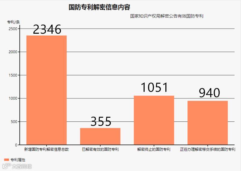 为加大国防专利推广转化力度,全军武器装备采购信息网新增“专利与成果->国防专利”栏目,主要发布国防专利解密信息。栏目新增2346件国防专利解密信息,包括移交国家知识产权局解密公告的355件有效国防专利和1051件解密终止国防专利的全文信息,以及正在办理解密移交手续的940件有效国防专利的发明名称、专利权人等6项信息。正在办理移交手续的940条国防专利全文信息,待移交国家知识产权局并公告后,将在全军武器装备采购信息网公布。广大用户可通过全军武器装备采购信息网互联网网站进行查询,或直接点击文章左下角"阅读原文"即可查看。