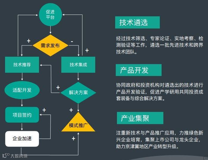以需求为引导,推动科技成果向绿色产业聚集发展。通过技术遴选、产品开发和产业集聚等环节助力京津冀地区产业转型升级。