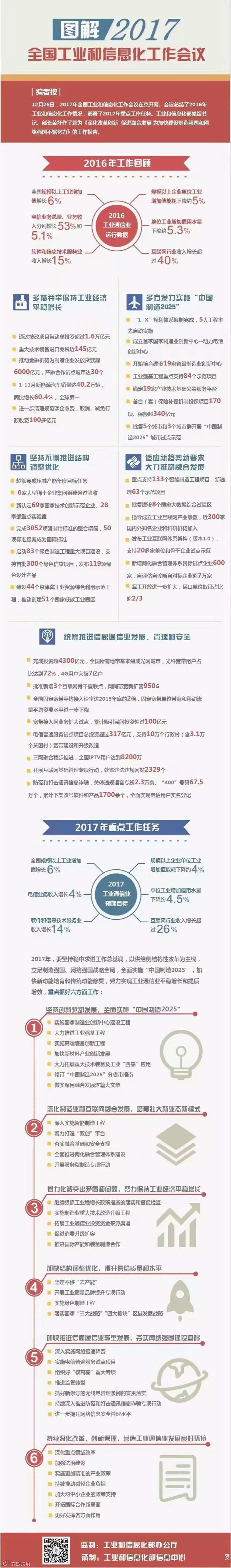 2017年中国工业和信息化工作会议26日在北京召开。中国工业和信息化部部长苗圩部署2017年六项重点工作任务。