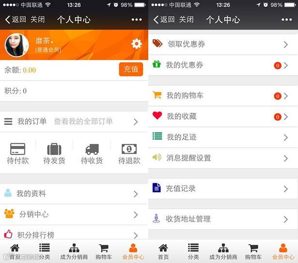 ✔ 完整的线上会员卡管理,可直接使用余额支付。