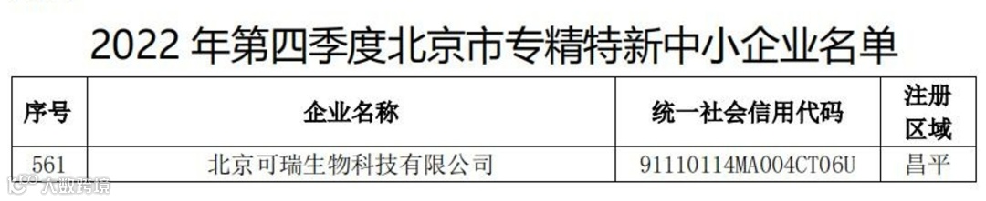 3月21日,经社会公示及相关程序,北京市经济和信息化局正式公布《2022年第四季度北京市专精特新中小企业名单》,可瑞生物凭借在TCR药物研发与转化领域的突出表现和行业影响力,通过层层筛选获得“北京市专精特新中小企业”认定。