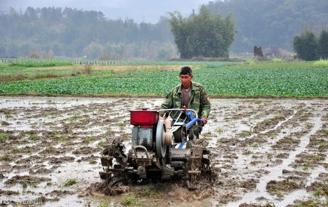 一大早,桂平市石咀镇治安村48岁的村民冼才负赶到农田,驾驶耕地机忙着犁地,一上午要把3亩刚灌溉的农田翻犁一遍,为接下来的水稻育秧做好准备。在他的身后,是一片黄灿灿的油菜花地。