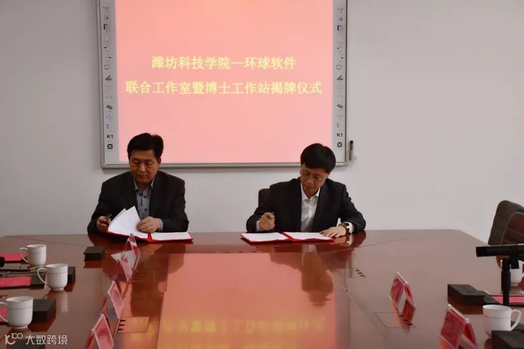 潍坊科技学院副校长李广伟与环球软件公司董事长刘德永签署合作协议