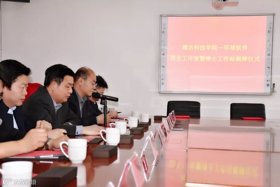 3月27日下午,由山东环球软件股份有限公司与潍坊科技学院中印计算机软件学院联合举办的“潍坊科技学院-环球软件联合工作室、博士工作站”揭牌仪式在软件学院隆重举行。潍坊科技学院副校长李广伟、中印计算机软件学院院长刘相法、环球软件董事长刘德永,以及相关负责人、软件学院师生代表出席仪式。