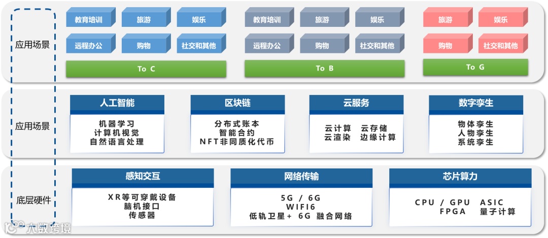 目前针对元宇宙还没有公认的定义,从业界针对元宇宙的诸多讨论来看,元宇宙是由包括区块链、AI、交互传感技术等集成类技术赋能的一个实时在线网络,是数字和物理世界相互作用下形成的有机生态体系,对生活、工作、商业、经济带来深远影响。