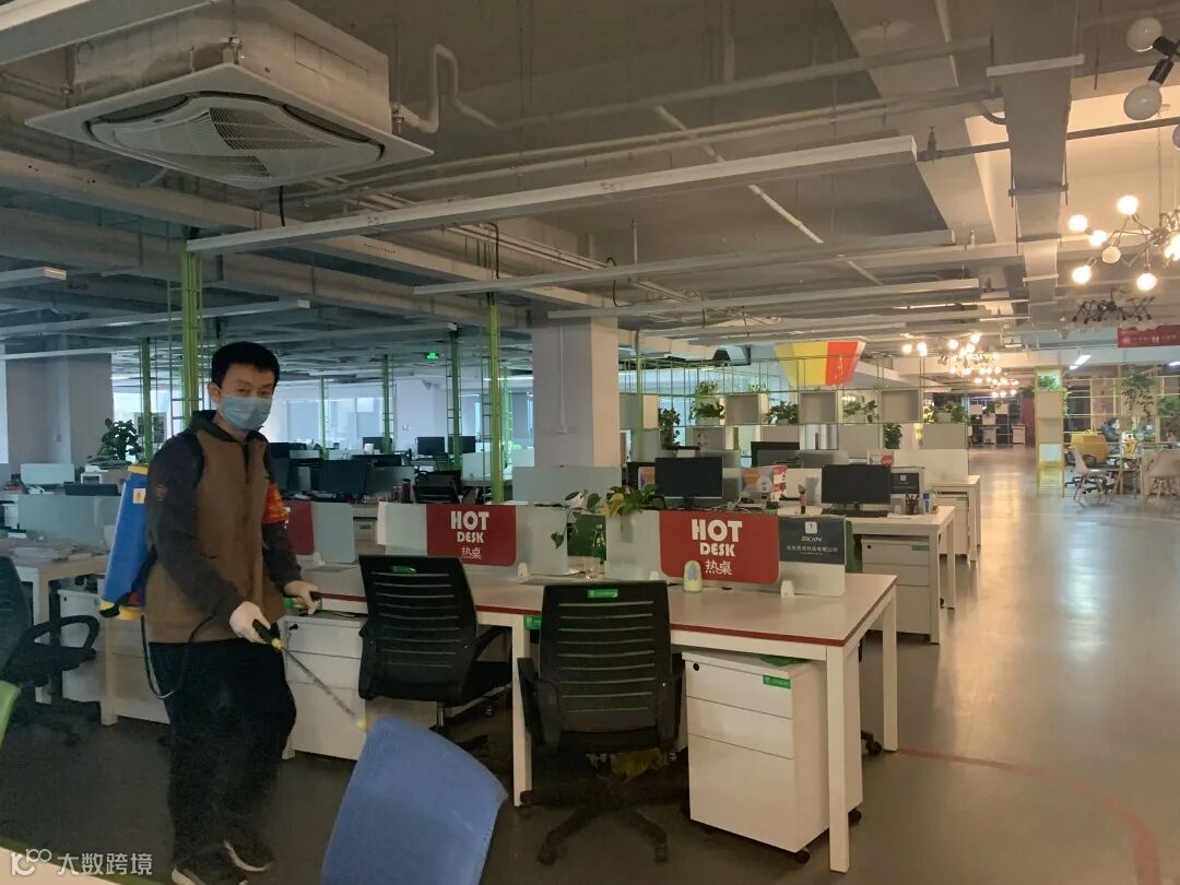 目前,创客小镇已为众创空间内复工企业提供一次性口罩2000支、一次性手套500副,租赁独立办公室的企业每家提供6公斤84消毒液,公共区域配备多瓶免洗消毒洗手液,充足的消毒物资保障和细致的措施安排促进了企业安心复工。除此外,创客小镇要求复工企业务必做到每日不少于两次消杀,每日不少于两次对复工员工测量体温,并做好相应记录悬挂至明显位置,以便随时查看。