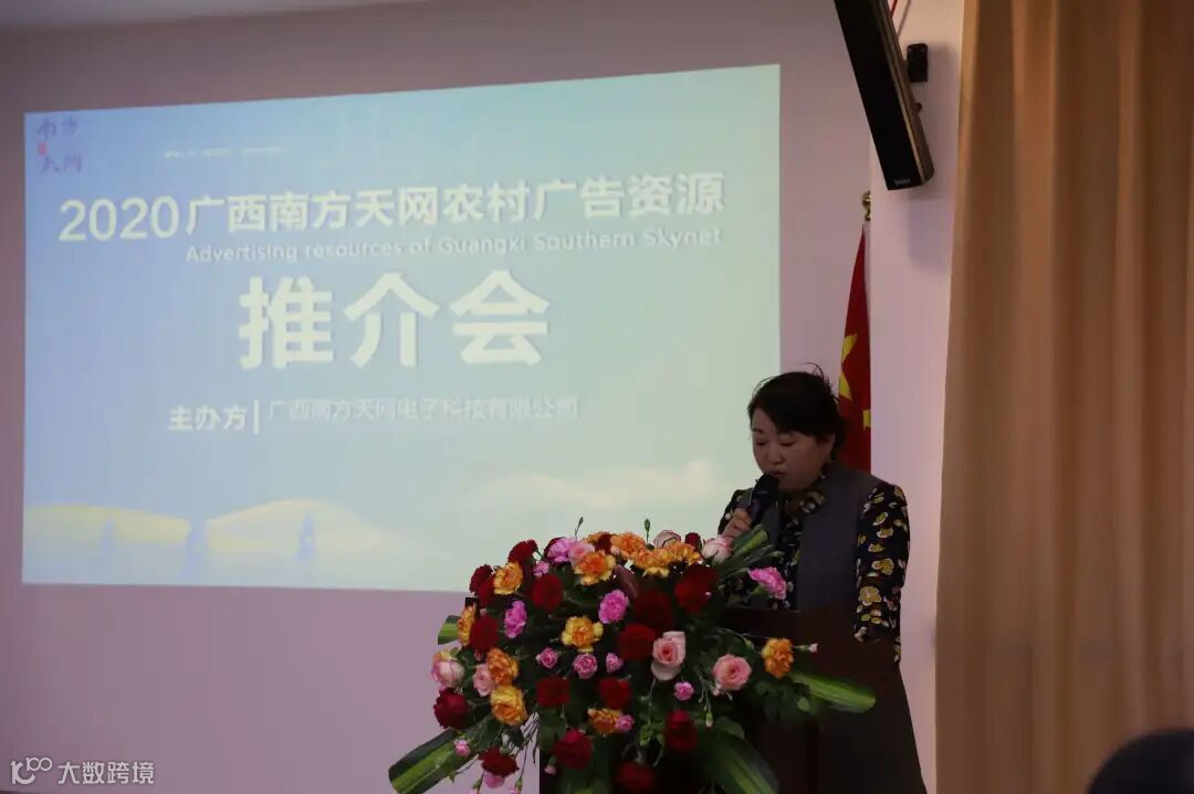 2020年4月9日下午,由广西南方天网电子科技有限公司主办的农村广告资源推介会在南宁-东盟企业总部基地五期成功举行。南方天网董事长谭晟铭先生、南方天网常务副总蒋燕萍女士以及广聚传媒董事长彭贵女士出席活动并致辞,其中还有分众传媒等10余家知名广告公司的企业家齐聚一堂,一同探讨新农村市场下的媒体业态。