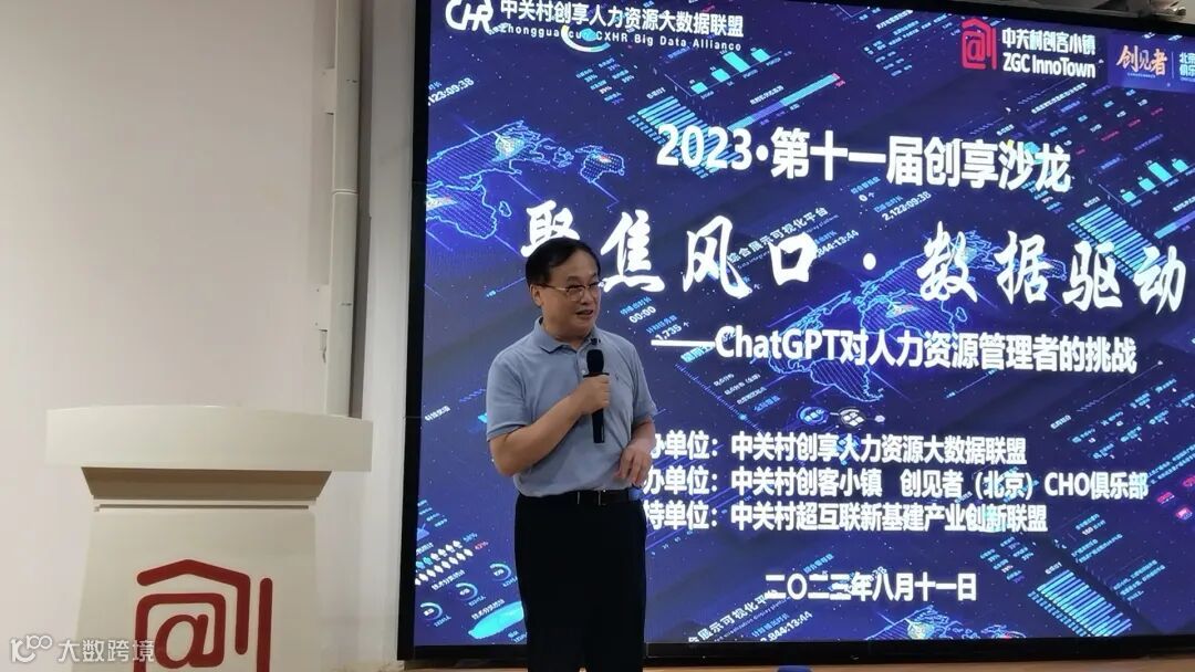 8月11日下午,由中关村创享人力资源大数据联盟主办,中关村创客小镇,创建者(北京)CHO俱乐部协办,中关村超互联新基建产业创新联盟支持举办的第十一期创享沙龙在中关村创客小镇一楼路演大厅成功举办。本期沙龙聚焦人工智能技术的最新发展,以“聚焦风口,数据驱动——ChatGPT对人力资源管理者的挑战”为主题,邀请近五十位专家学者、政府相关部门领导、企业家和企业人力资源工作者到会,通过分享与交流,集中各方智慧,帮助企业管理者在数智时代了解最新技术发展和人才发展动态,迭代自身能力架构,实现更大的价值提升。